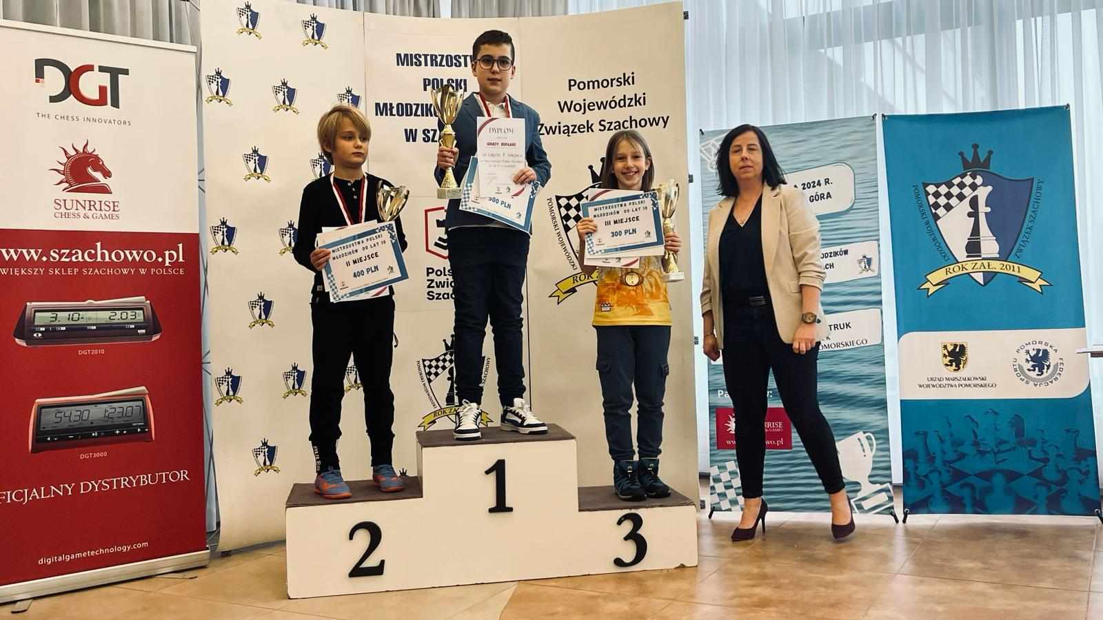 Sukcesy Podopiecznych na Mistrzostwach Polski Młodzików 17 marca zakończyły się, rozgrywane przez ostatni tydzień, Mistrzostwa Polski Młodzików 2024! Emocje towarzyszyły do samego końca, zarówno śledzącym zmagania jak i samym grającym. W barwach TG Matu wystąpili: Grupa do chłopców lat 10Marek PisarskiEmil Czech Grupa dziewczyn do lat 10Sokoła JuliaTRZECI W POLSCE – tak właśnie Emil Czech może mówić o sobie po niesamowitym wyczynie jakim jest medal na Mistrzostwach Polski! Nasz zawodnik stanął namiejscu podium mając na swoim koncie 6,5pkt z 9 partii, co więcej zyskując astronomiczne +118 oczek do rankingu FIDE